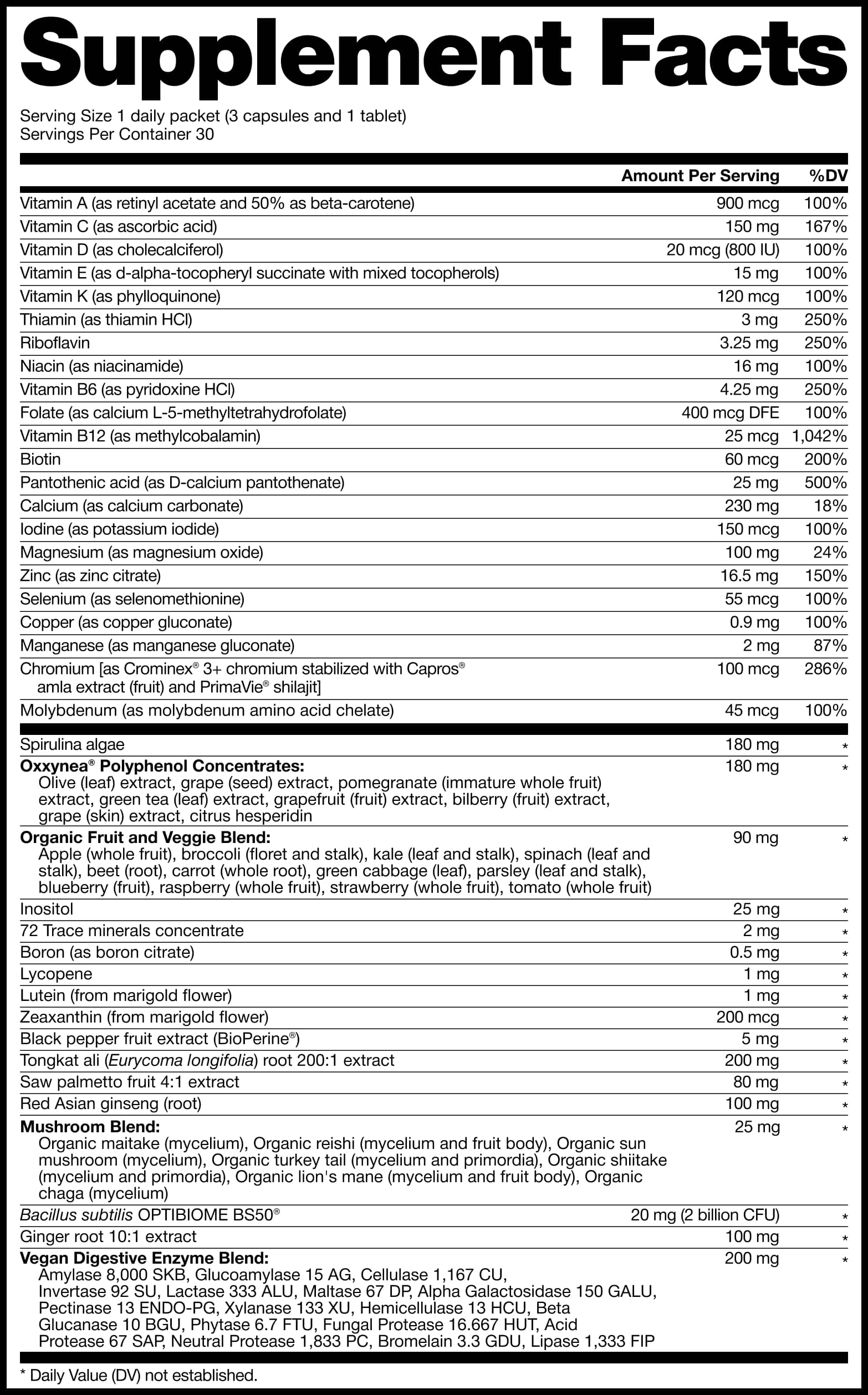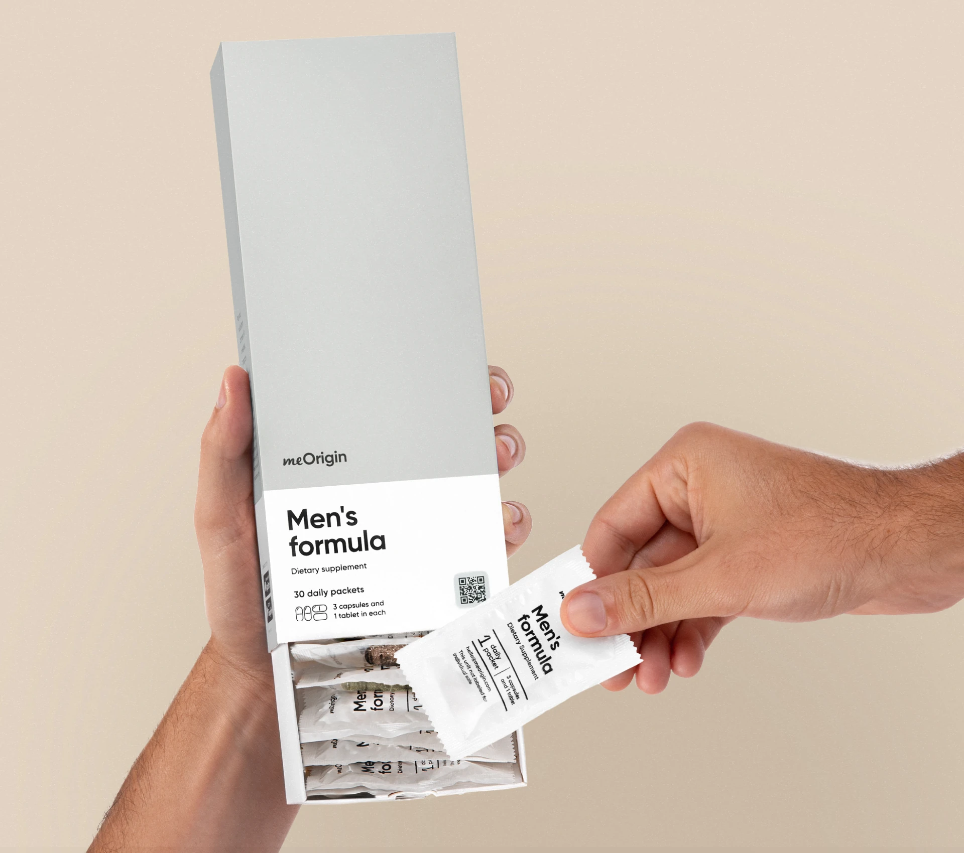 One daily packet of meOrigin® Men's Formula delivers 79 science-backed ingredients — vitamins, minerals, probiotics, enzymes, antioxidants, superfoods, and greens — to help cover daily nutritional needs.*